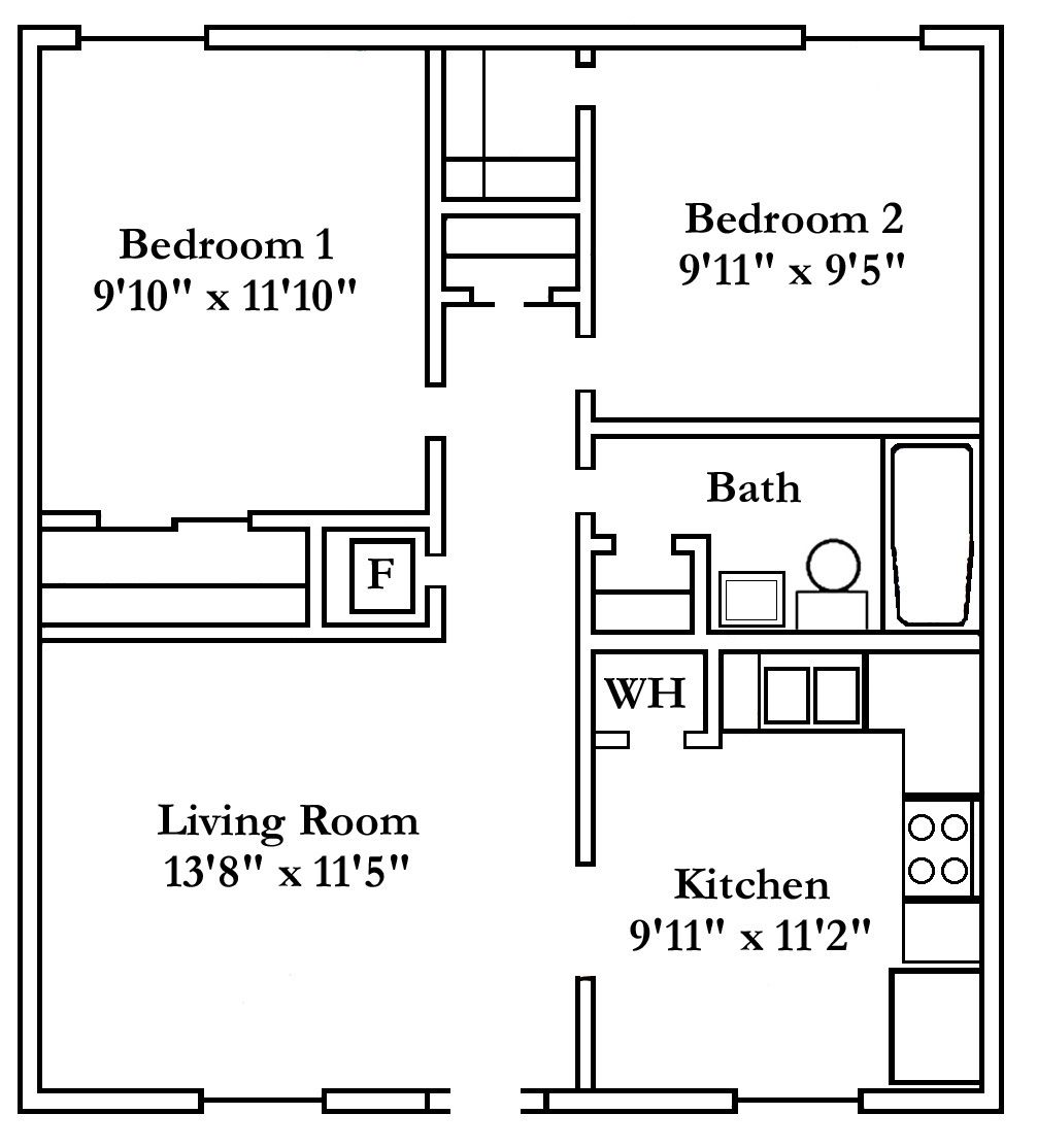 2 Bedroom 1 Bath Apartment Floor Plans