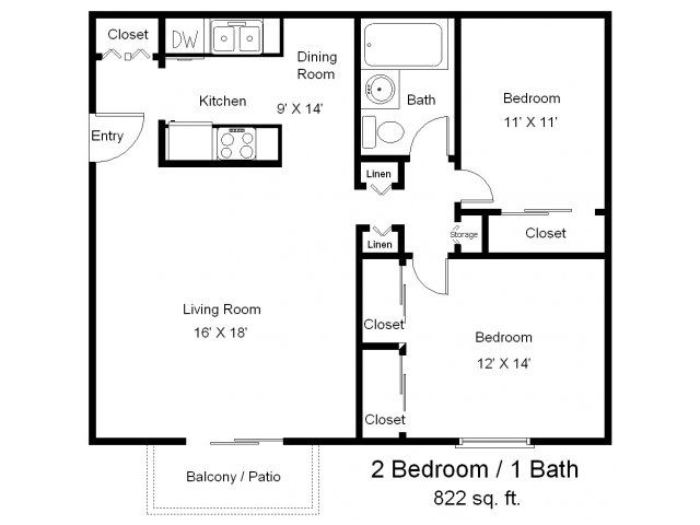 2 Bedroom One Bath Apartment Floor Plans