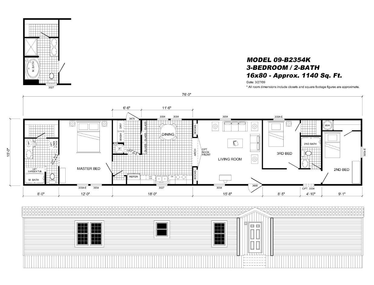 2 Bedroom 2 Bath Two Bedroom 16x80 Mobile Home Floor Plans