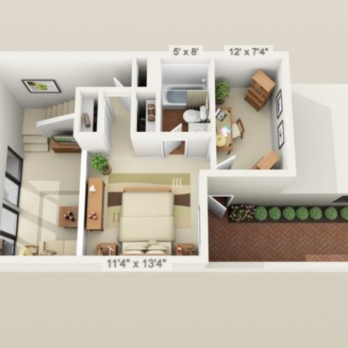 2 bedroom 2 bathroom house plans 3d