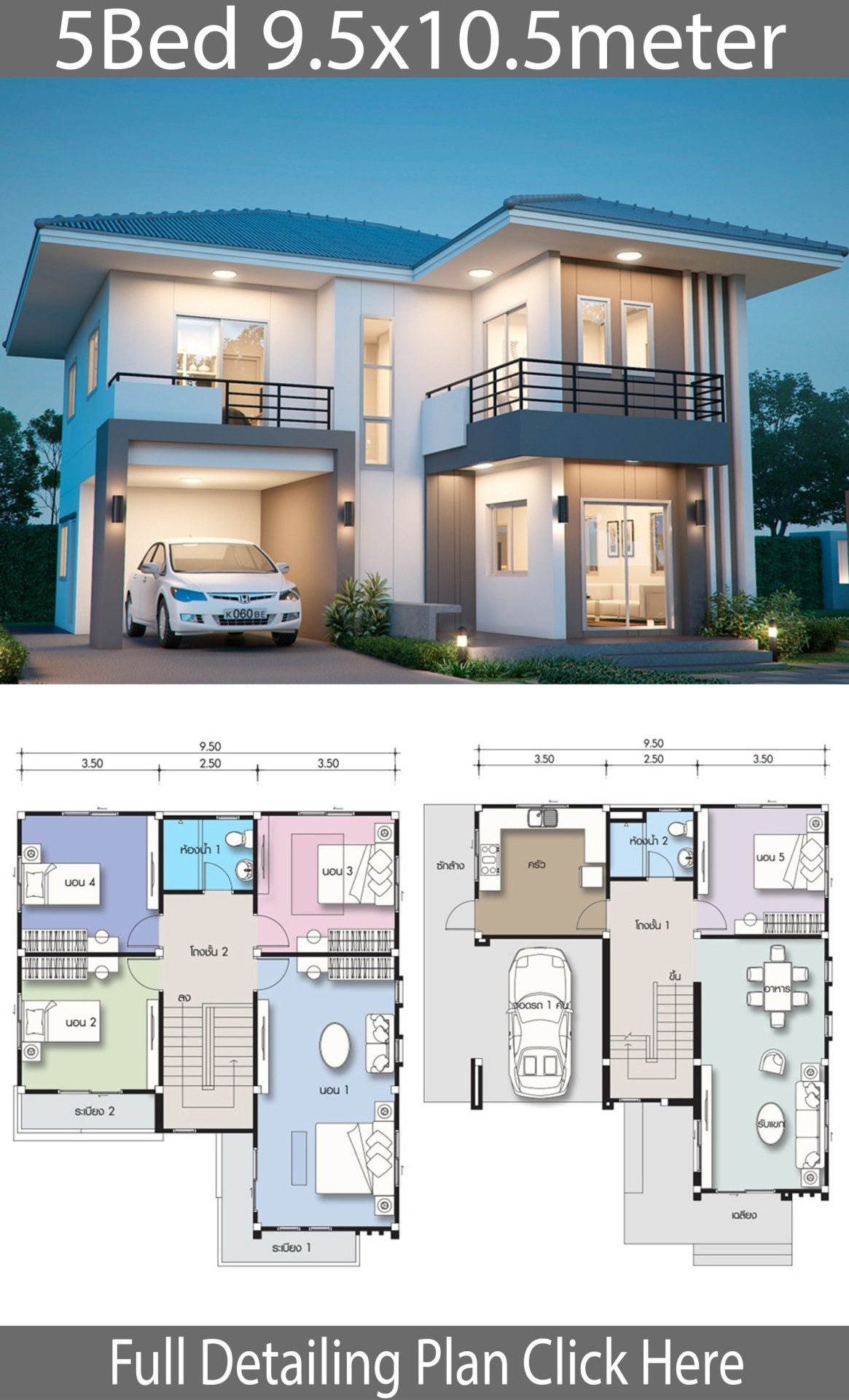 3 bedroom house plans with 2 or 2 1 2 bathrooms are the most common house plan configuration that people buy these days. On the other hand 5 bedroom house plans are also appreciated by smaller families who simply require extra rooms remember that a bedroom can be transformed into something other than a bedroom like a den playroom exercise area home office or theatre. Contemporary house plans on the other hand blend a mixture of whatever architecture is trendy in the here and now which may or may not include modern architecture. The lot should be at least 17 meters frontage to fit this house design.
