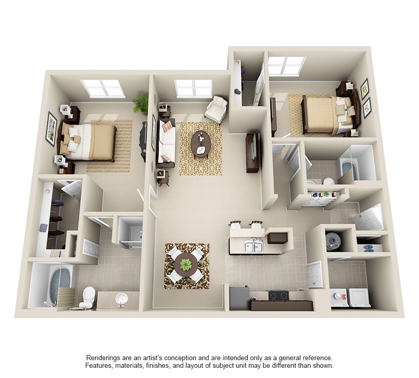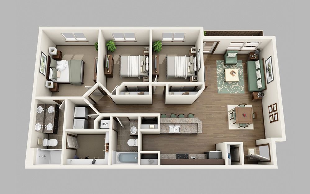 A jack and jill bathroom makes a perfect option for siblings with the master bedroom has it s own bath and walk in closet. Two or two and a half bathrooms are usually standard for 3 bedroom homes but we can customize to meet your needs. The average rent for a 3 bedroom apartment in new jersey is 1 504.