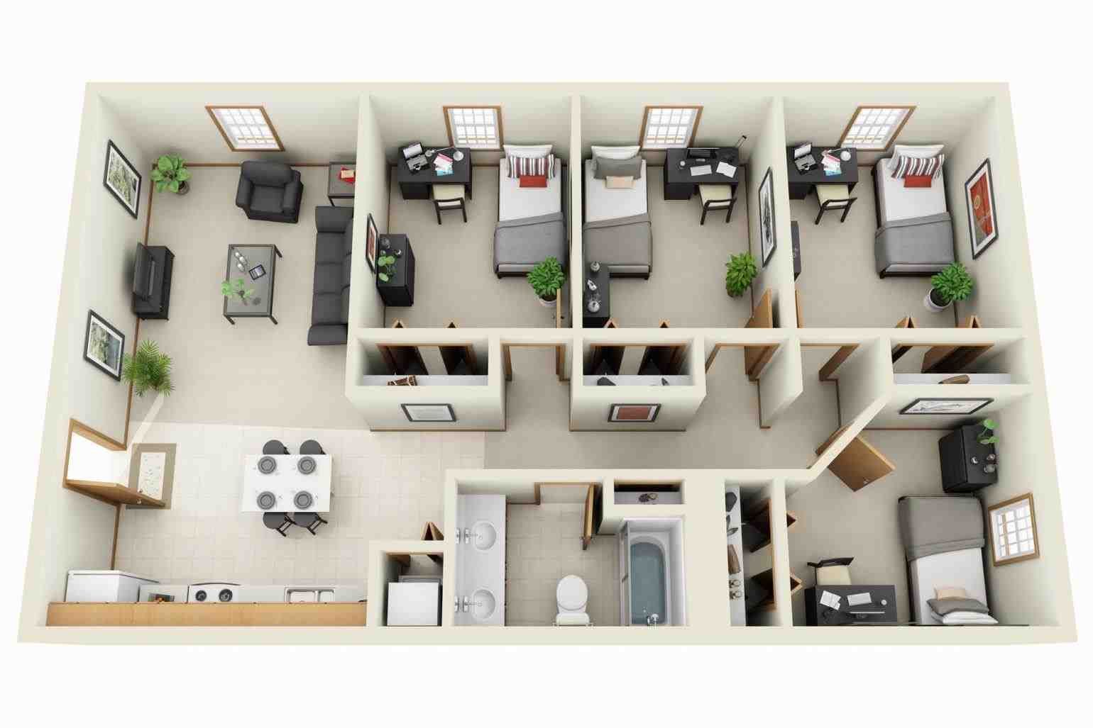 Marvelous 3d Open Floor Plan 3 Bedroom 2 Bathroom Google Search Homes 3d 4 Bedroom Floor Plans Photos Dom Simsov Chertezhi Doma Planirovka Doma