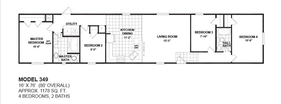 All of our single section manufactured homes include two to three bedrooms and two bathrooms so there is plenty of space for a family with room to grow. Single wide mobile home floor plans the floor plans of single wide mobile homes range from one bed one bath options that are 379 square feet up to three bed and two bath models that are 1 026 square feet. Browse through single section floor plans and renderings of our clayton homes factory direct models.