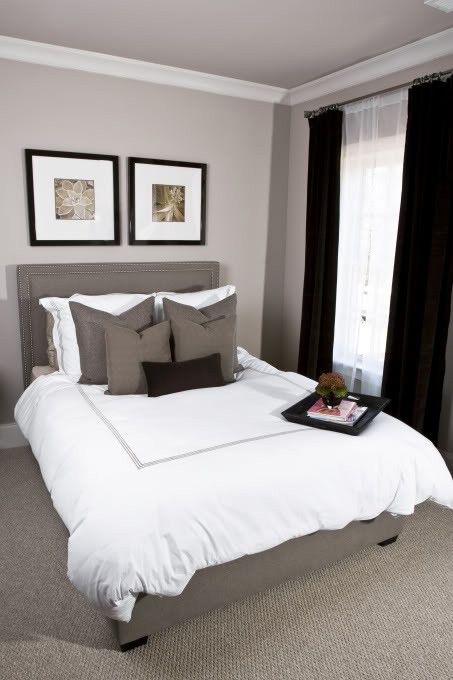 Since the violet walls in this bedroom are very bold the furniture and bedding needed to tone the look down says designer brian patrick flynn who chose art and bedding with a chic black white and gray color scheme for balance.