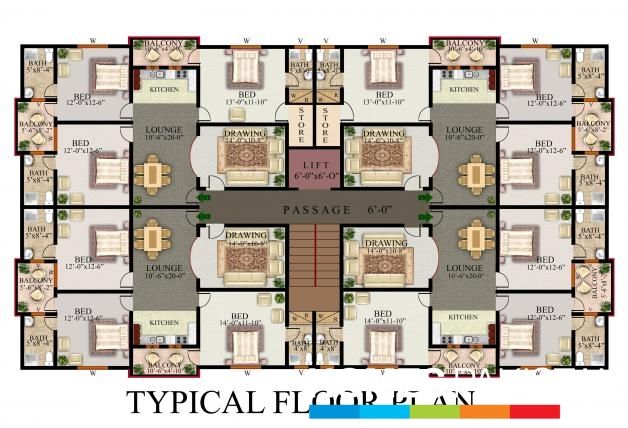 Larger plans can also include studio or one bedroom condominiums often placed at the bottom floor of a multiple story building with bigger units such as penthouses on the upper floor plans.