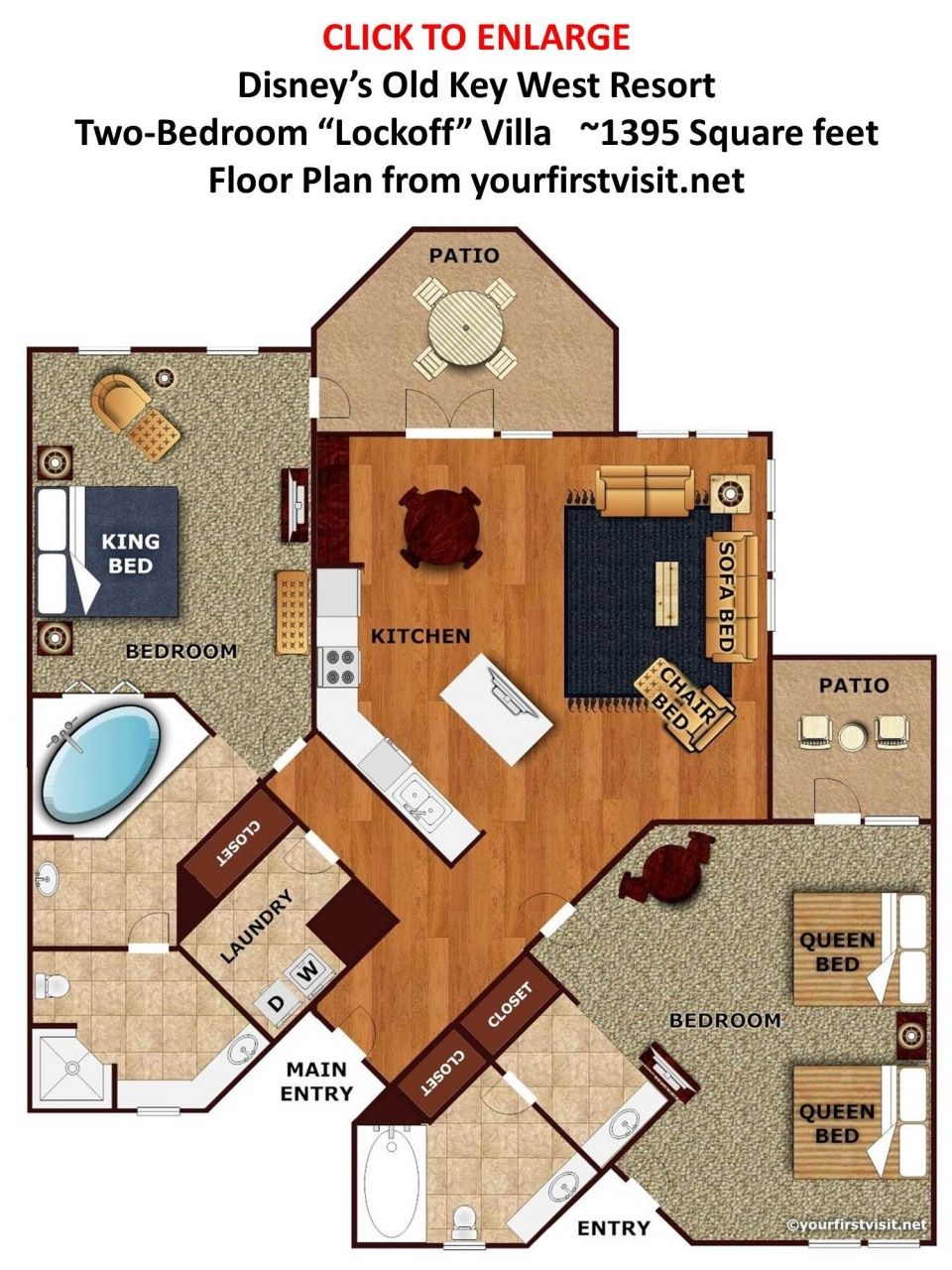 Disney Saratoga Springs 2 Bedroom Villa Floor Plan