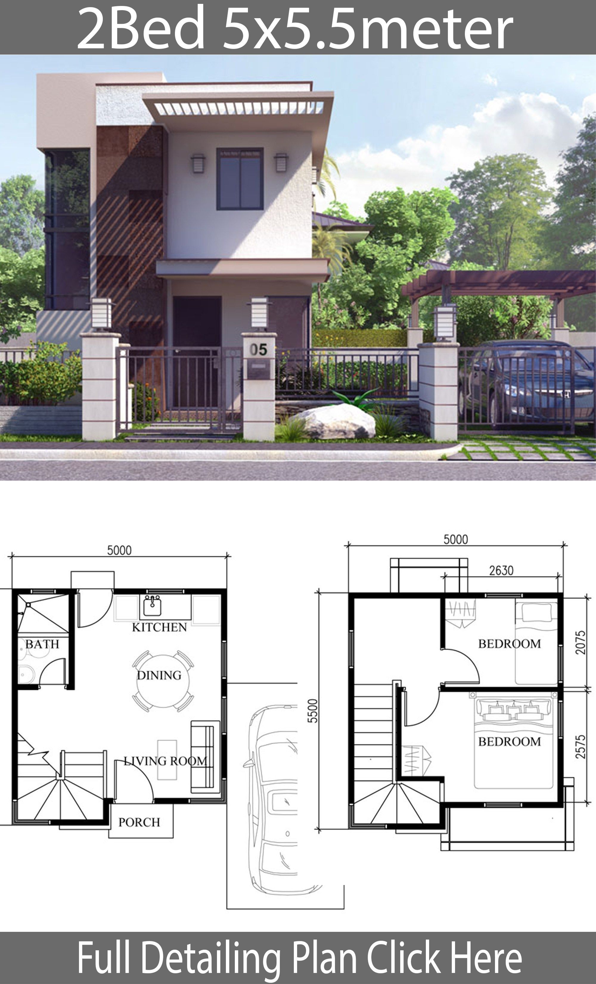Two 2 bedroom floor plans include cottage designs house plans for narrow lots and small home floor plans that are perfect for starter homes or empty nests. Total floor area is 55 square meters that can be built in a lot with 120 square meters lot area. Small house design plans 6 8 with 2 bedrooms. With enough space for a guest room home office or play room 2 bedroom house plans are perfect for all kinds of homeowners.