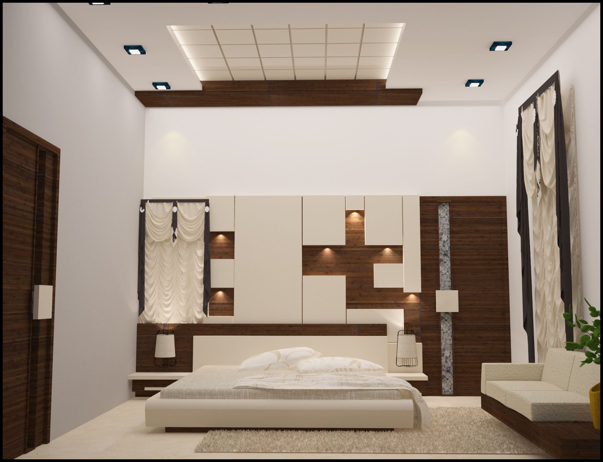 On the other hand padded and tufted headboards can look inviting and luxurious. Jun 18 2019 explore samad khan s board bedroom pop design on pinterest. Complete master bedroom remodel with stacked stone fireplace sliding barn door swing arm wall sconces and rustic faux ceiling beams.