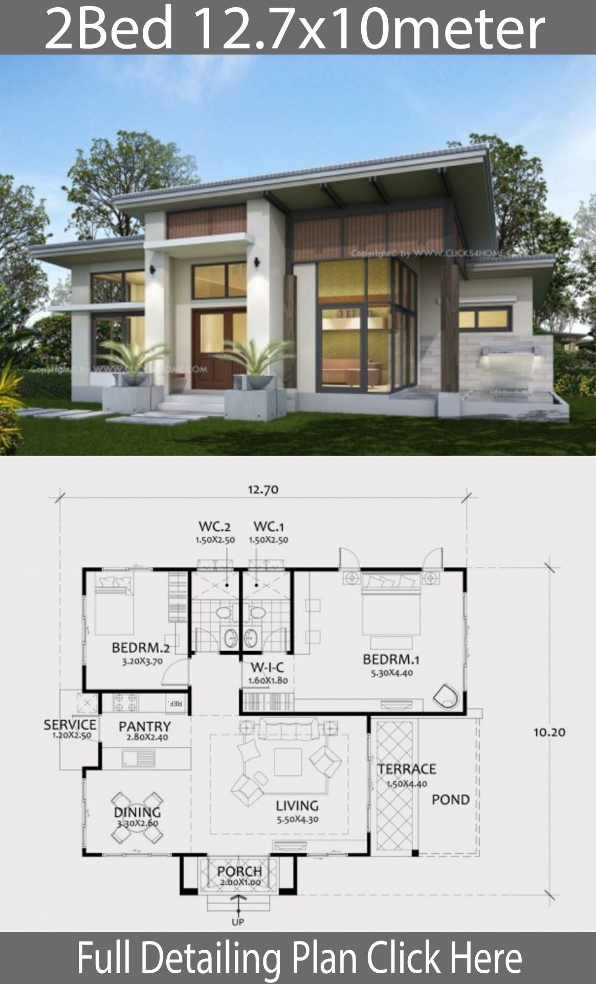 Modern Bungalow House Floor Plan With 2 Bedrooms