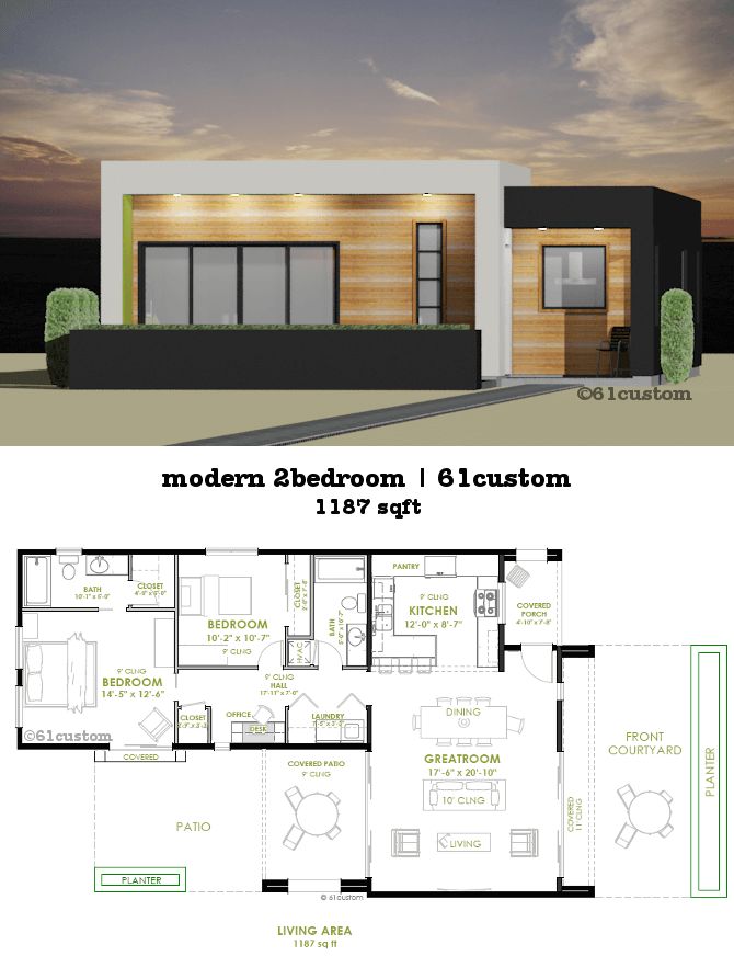 Two 12 foot doors open the greatroom up to a front courtyard and a generous backyard patio which makes this a great house plan for entertaining. This modern and luxurious bungalow house plan has two bedrooms and two toilet and baths. 86 m a compact modern two bedroom house with large kitchen https z500 pl projekt 672 zx105 kompaktowy dom w nowoczesnym stylu z dwiema sypialniami i duz. For instance a contemporary house plan might feature a woodsy craftsman exterior a modern open layout and rich outdoor living space.