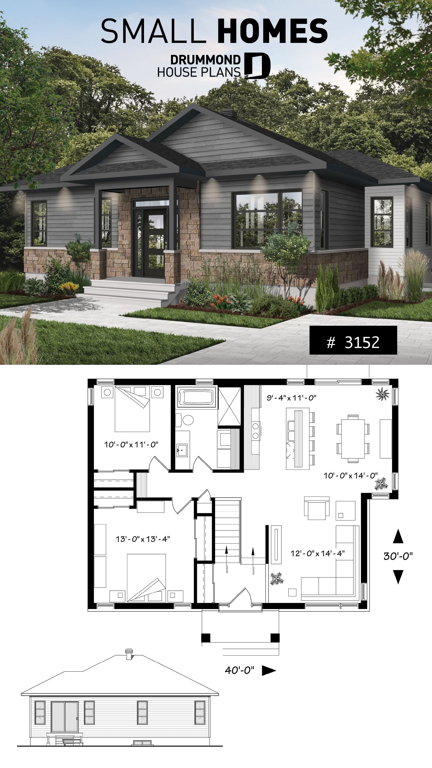 Find small 2bed 2bath designs modern open floor plans ranch homes with garage more. Browse this beautiful selection of small 2 bedroom house plans cabin house plans and cottage house plans if you need only one child s room or a guest or hobby room. 3 bedrooms and 2 or more bathrooms is the right number for many homeowners. The total floor area is 150 sq m.