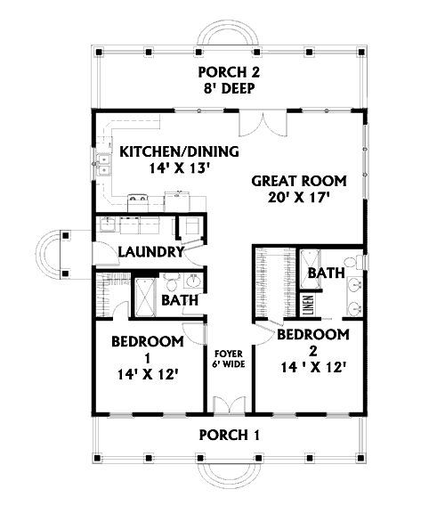 One bedroom is usually larger serving as the master suite for the homeowners. The lot should be at least 17 meters frontage to fit this house design. Our collection of small 2 bedroom one story house plans cottage bungalow floor plans offer a variety of models with 2 bedroom floor plans ideal when only one child s bedroom is required or when you just need a spare room for guests work or hobbies.