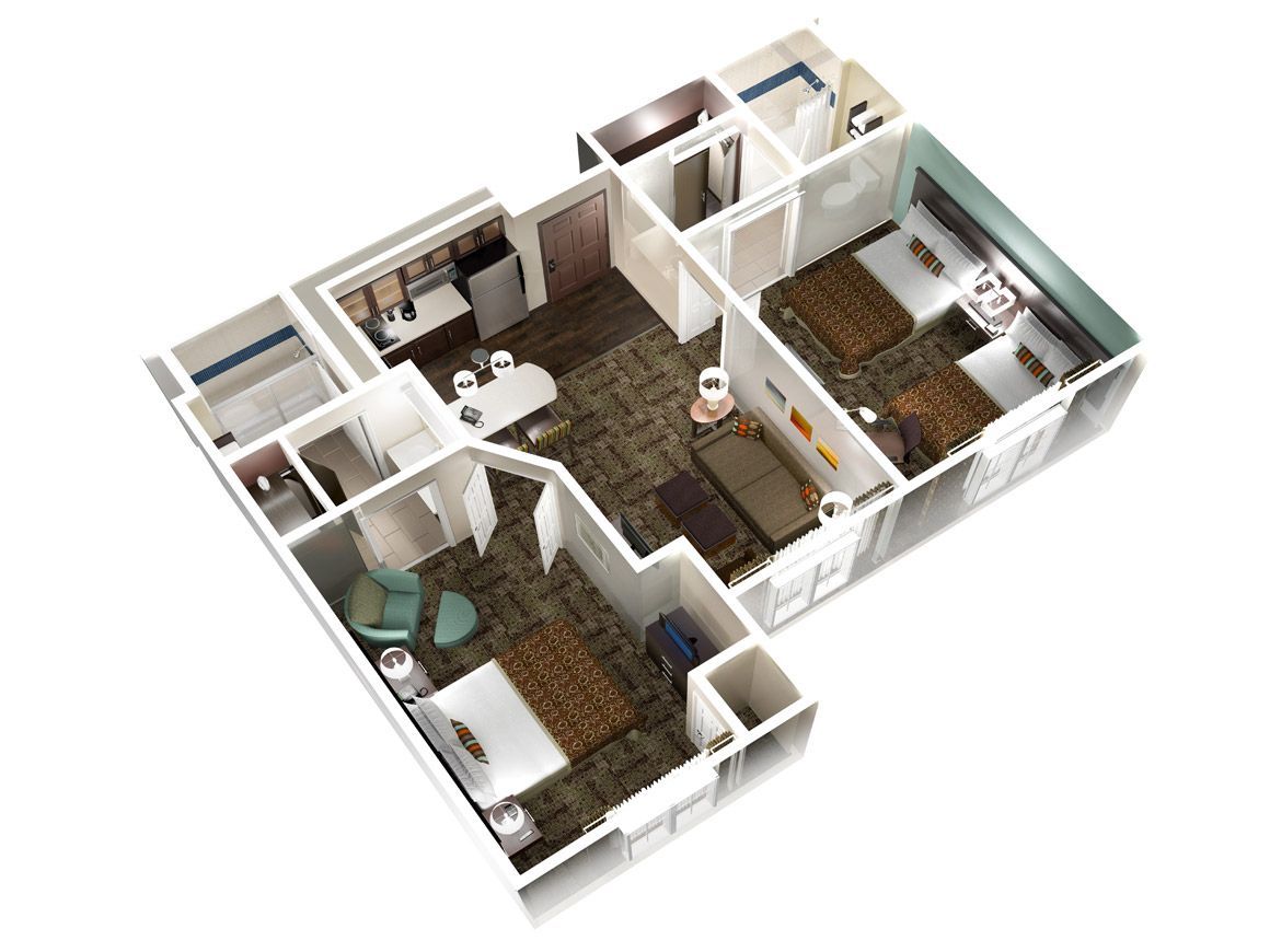 The 2 bedroom suite had a room with 2 queen beds and a room with a king bed each of these had its own full bathroom and were located on either side of the spacious living area with full kitchen. Book direct with staybridge suites at ihg for the best rates. Power associates has chosen staybridge suites as the number one brand in the extended stay category. Learn what you can expect from your staybridge suites accommodations and preview the floorplans for studio studio double and one bedroom suites.