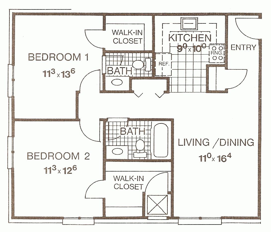 Two Bedroom 2 Bedroom 1 Bathroom Floor Plan